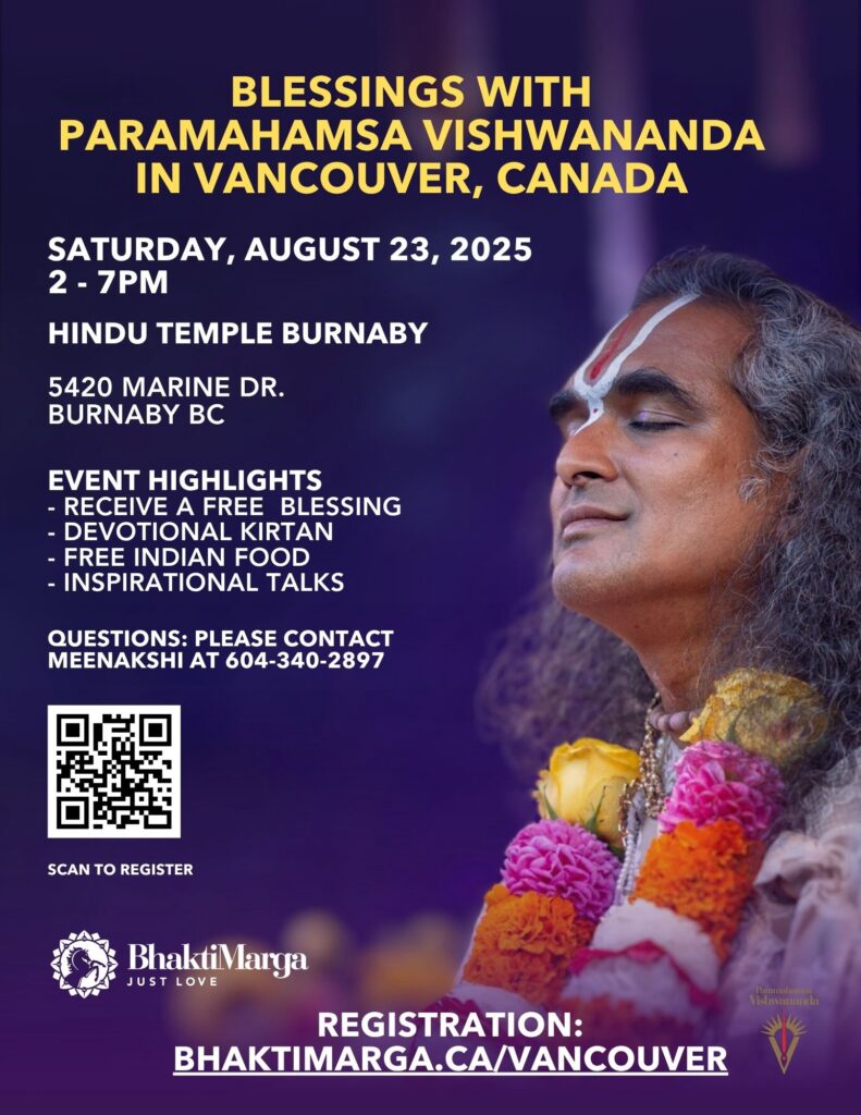 Join us for darshan with Paramahamsa Vishwananda on Saturday August 23rd, 2025 from 2 – 7pm. Free food will be provided in addition to all the good energy that will nourish the soul.